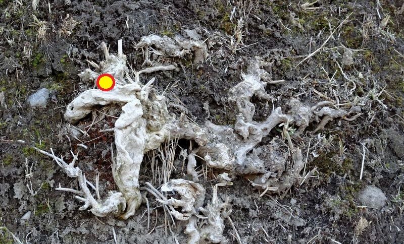 土塀の中の龍 旧村落の曲がりくねった道を散策中に土塀の模様が気になりました。 蔦の根のような模様が龍になっていました。 目を入れると角も生えて生き返ったよう。(笑) 久々のネタを追加です。('25/01/21)