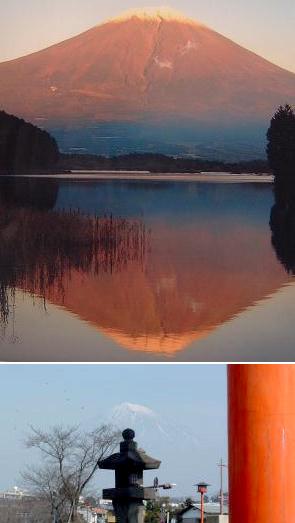 浅間神社の鳥居越に、ご神体の富士山を望む (暢)