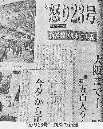 「三番ホームに着いた『ひかり23号』から次々に降りて来る約五百人の乗客はオーバーのえりを立て、むっつりした表情で階段を降りて行く。なにを聞いても『疲れてくたくた。これがスピードを自慢にする新幹線かね』といった声ばかり。まさに“怒り23号”の到着といった重たい空気だった」