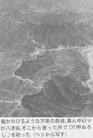 二年前にH、O教授、T女性教授ら同学園の人たちと北京へ行った時のことである。誰言うとなく「中国では竜がめでたいしるし。竜がのたうっているように見える万里の長城で昇竜ならぬ"勝虎"を祈りましょう」と途中まで登り、全員で「六甲おろし」を合唱して鬱憤をはらした(昭和六十三年八月三十日)。もちろん、テープにも録音した。他の観光客がけげんな顔をしていたが。