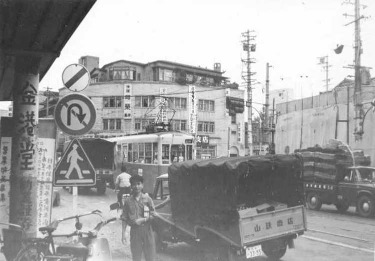 香林坊 香林坊である。これも1962年の夏ごろか。後ろは魚半のビルか。後方右側には、北国書林がありその裏にあるパチンコ屋「ひばり」の7番には、T先輩がいつもいるという伝説もあった。大学は街に中央、お城の中にあり環境が良かった。今は移転をして城を明け渡してしまっているが、大学の魅力も半減してしまった。(お)