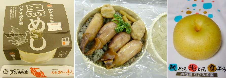 会場では「あべ鳥取堂」のイカを素材に生かした「黒めし」とこの季節に20世紀梨がお土産でした。氷点下の冷蔵技術を鳥取県が開発し旧正月に台湾で売り出しているとのこと。みずみずしい果物はお供えとして喜ばれ、現地では1個1000円で売られているとのことでした。