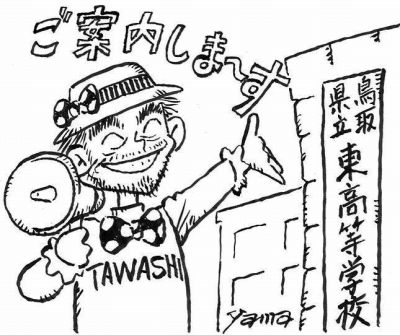 今は建て替えられて、なくなりましたが、玄関に向かって建物の右端に鉄筋校舎がありました。これは、鳥取県下で最初の鉄筋校舎でした。三階建、六教室 昭和30年に落成しました。工費1200万円。しかし、地元負担金が必要で、PTA70万円、篤志寄付40万。この金を集めるため、東高を卒業し、当時学生であった私たちのところまで、募金の依頼が来たりもしました。今では考えられないことではないでしょうか。