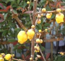 ● 昨年、初売りで蕾のついた苗木を求め自宅の裏に植えました。今年は見事に花をそろえました。母もすでに4年前に逝きましたが、もう少し早く植えておけばよかったと思います。('03/01/04撮影)