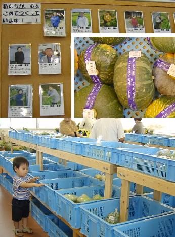 兵庫県の明石から社町へ伸びる国道175号線沿いの小野市東側の沿道に『ひまわりの丘』ができました。高大な無料駐車場があり遊具や芝生や庭園があり家族連れで賑っています。その中の一角に生産者が直接店頭に並べるJAによる店舗がありました。● 無農薬・低農薬を謳い農作物には生産者の固有名詞が印刷して一個ずつ貼り付けてあります。壁には、提供者の写真と一言集も展示してあり、誰が作ったのかもわかります。「私たちが心を込めてつくっています」とありました。パッケージもビニール袋に80円から150円の間で括られ、ケースに入れらているだけ。商品パッケージも省略されています。それでも、レジは3台でフル稼働をしていました。値段も、安いとつれあいの観察。郊外で駐車場さえあれば、ドライブがてら、気軽に立ち寄れます。 ● 「道の駅」でも安い農産物が売られ、イベントも開かれ地域の中心になっています。車社会と過疎地がうまくバランスをとって共存していく新しいスタイルが見えます。 (03/07/25撮影)