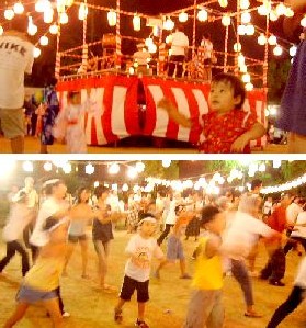 現在の団地に引越して25年経過しました。人口構成も大きく変化して高齢化が進み普段は閑散としています。団地内に数箇所ある公園のグランドも子供たちが少なくなってあまり遊ばないために草が生えています。●今年も団地の「盆踊り」がありました。この日だけは、こんなに子供たちがいたのかと思うほど多くの参加者があり賑やかな抽選会・模擬店・盆踊りと盛り上がっていました。この団地で過ごし結婚して出て行ったこどもたちが実家に里帰りをするのです。長女も孫とともに参加していましたが、小中のころの顔なじみにあったと言ってました。 ● 盆踊りを主催する自治会も、以前はやぐらを有志で組んだりしてましたが、最近は業者に委託して提灯のとりつけや電源の配線などもお願いしているようです。このような行事もいつまでできるのか時代の趨勢を反映しています。 (03/08/23撮影)