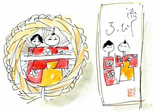庭に植えた枝垂れ梅も今が満開。目白がとまっていました。毎年内裏様も飾りますが、郷土のお土産用に作られている流し雛も素朴でいいものです。