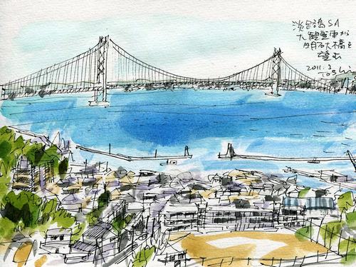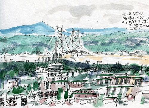 先月と同じく明石大橋のスケッチを表紙にしました。団地の近くにある高塚山(186m)へ天気が良いと夕方に上ります。