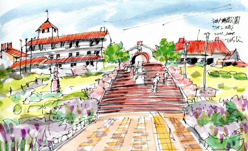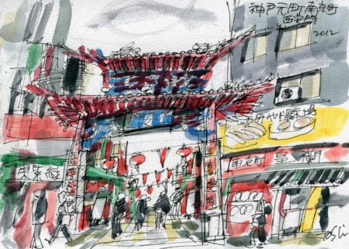 blog「デジの目」にも掲載しましたが8/28〜9/1まで九寨溝と黄龍に行きました。このスケッチは成都の武候祠博物館に隣接した建物群「錦里」で全長300m。昔の中国の建物を復元しみやげ物などで賑わっています。