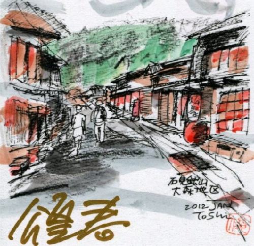 今年の年賀状のスケッチは石見銀山の鄙びた家並にしました。昨年は海外旅行はパスして国内をいくつかドライブしました。日本にもスケッチポイントはたくさんあります。過去の表紙のスケッチは、「表紙日記ログ」へ格納しております。 今年もよろしくお願いいたします。
